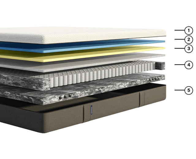 This layer has pocket springs that are zoned to the 5 parts of your body that need support (head, shoulders, hips, knees, feet). HRX foam surrounds these pocket springs for edge support that prevents people from falling off at night and makes it easier to sit up in the morning; and adds durability and stability, preventing your mattress from sagging.